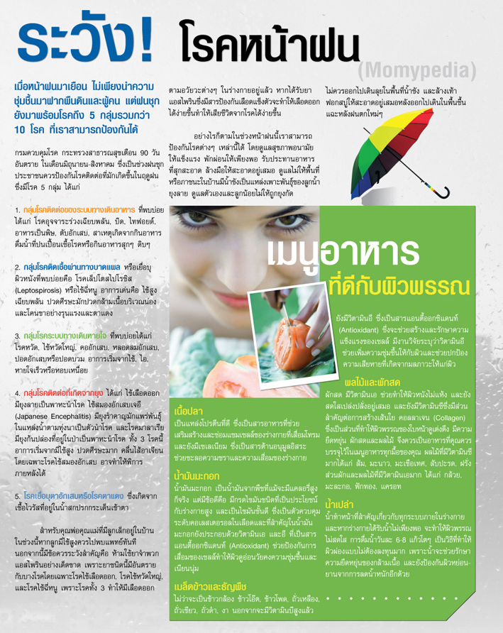 เมื่อหน้าฝนมาเยือน ไม่เพียงนำความชุ่มชื้นมาฝากผืนดินและผู้คนแต่ฝนชุกยังมาพร้อมโรคถึง 5 กลุ่ม รวมกว่า 10 โรค ที่เราสามารถป้องกันได้
